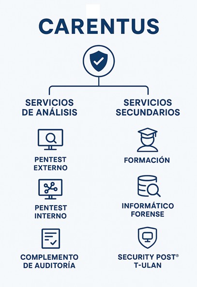 Carentus desarrolla servicios avanzados de ciberseguridad orientados a empresas medianas y grandes. Nuestro enfoque se basa en el modelo Security Post®, un ciclo continuo de análisis, seguimiento y respuesta (El ciclo de la Seguridad), que permite mantener un nivel de protección estable, coherente y alineado con las mejores prácticas del sector.